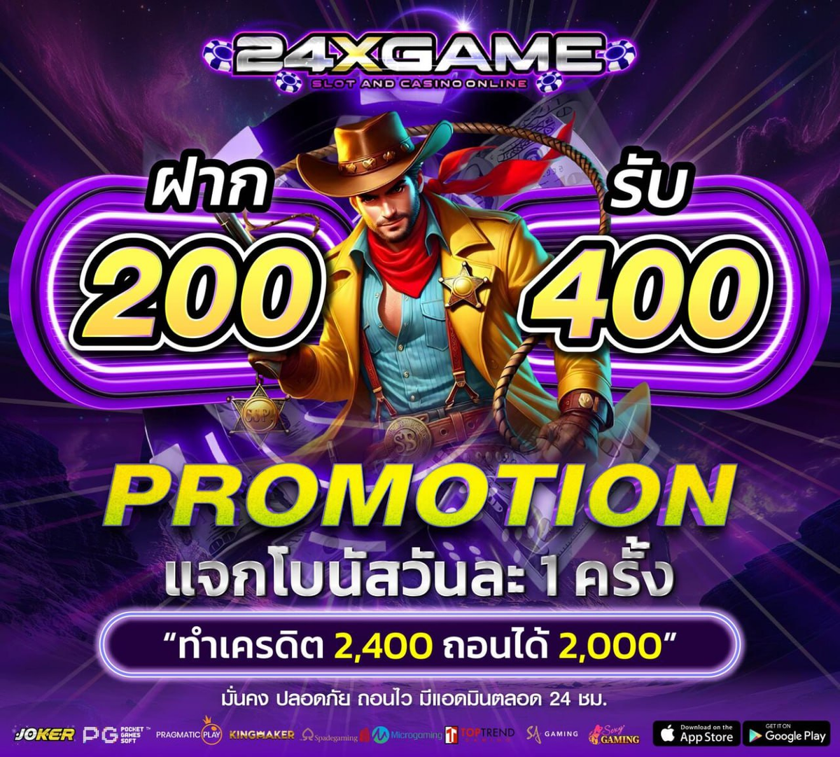แจกโบนัสวันละครั้ง ฝาก 200 รับ 400